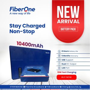 In conclusion, the FiberOne broadband battery pack is the ultimate backup power solution for all your devices. It provides a reliable and convenient way to stay connected even during power outages. With its versatile compatibility and long-lasting battery life, it is a must-have for anyone who values staying connected in today’s digital world. You can place an order HERE to get yours today.